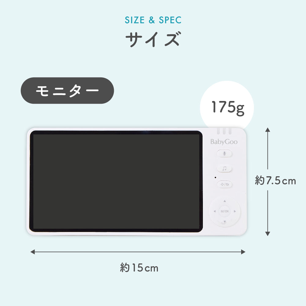 5インチカラー液晶ディスプレイ搭載。HD解像度(1280×720ピクセル=約92万画素)のハイビジョン高画質で赤ちゃんの様子をより詳細に映し出します。2倍、4倍のズーム機能内蔵で小さな変化も見逃しません。