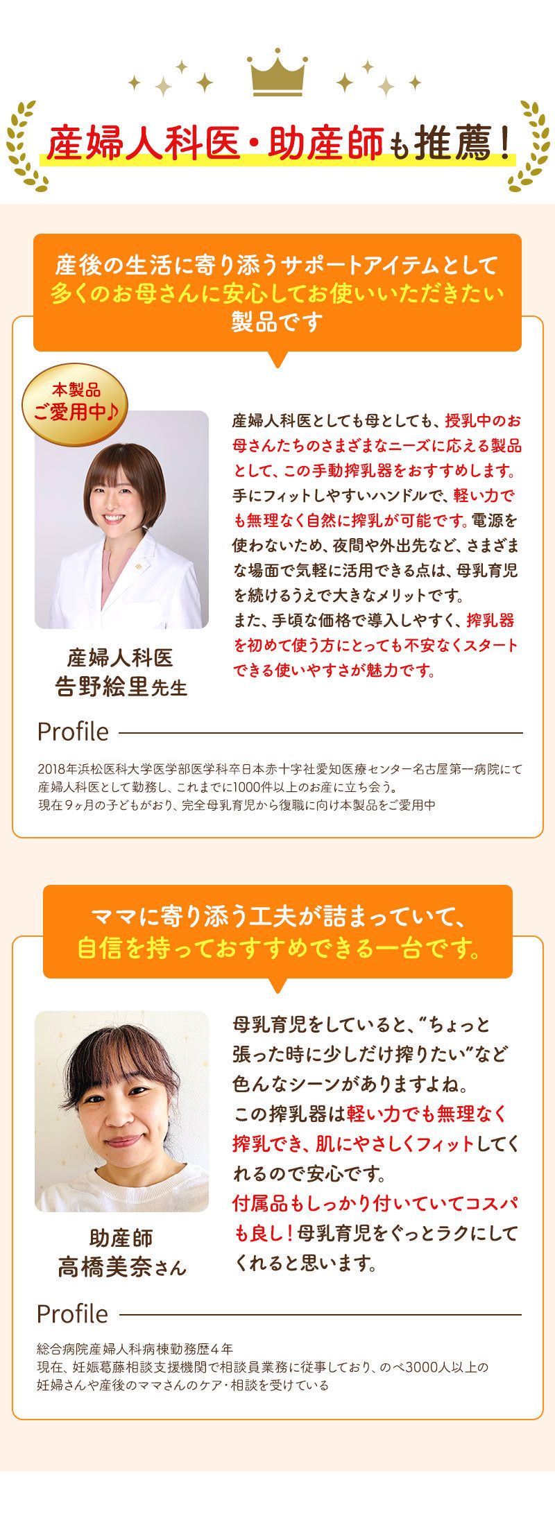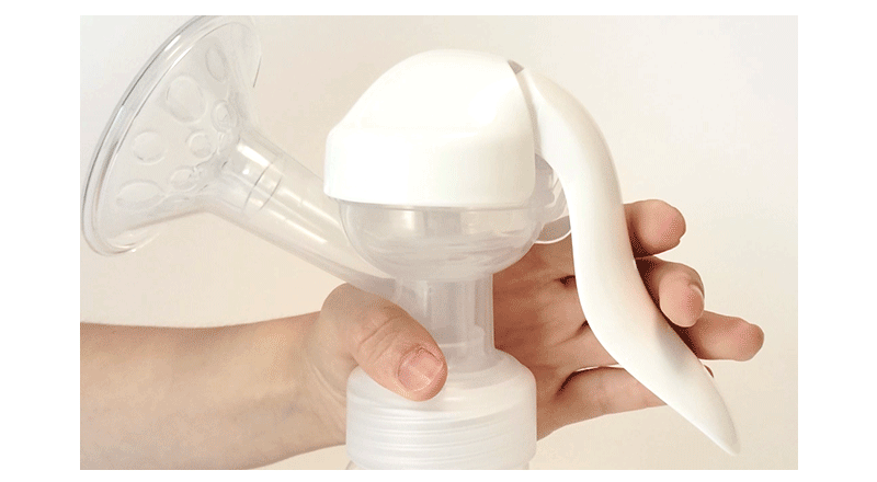 【握りやすいハンドル】女性の手に合わせた握りやすいハンドルで楽々搾乳。力が必要ないので長時間の搾乳でも手が痛くなりません。